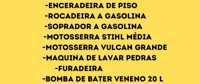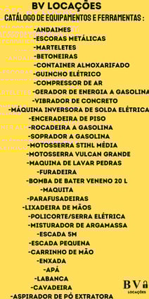 Equipamentos e ferramentas disponíveis para locação